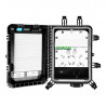 Produto de fabricação Fibracem utilizado em redes ópticas de distribuição, tendo como função principal realizar a interconexão entre o cabo óptico de entrada com até 16 cabos ópticos de acesso aos assinantes (drop mini), utilizando fusão direta, splitters ou adaptadores ópticos. Como função secundária, permite também a derivação de cabos de baixa capacidade, visando à continuidade da rede. Todas as saídas de cabos e vedações possuem fechamento mecânico, sem a necessidade de utilização de ferramentas especiais.
