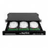 Tem capacidade de acomodação de até 48 emendas em 1U e painel frontal para adaptadores intercambiável.