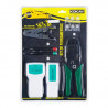 Kit com ferramentas essenciais para montagem e testes de cabos de rede.