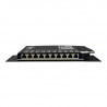 PoE In PoE Out 165VDC: RJ45 blindado, sendo 5 portas tipo LAN e 5 portas tipo PoE IEEE802.3 at (pinos 4 e 5 positivos, 7 e 8 negativos)