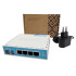 O hAP lite está equipado com uma CPU poderosa de 650 MHz, 32 MB de RAM, rede sem fio integrada de 2,4GHz de cadeia dupla, quatro portas Fast Ethernet e uma licença RouterOS L4. Fonte de alimentação USB incluída. -