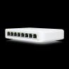 O USW-Lite-8-PoE é um switch Camada 2 totalmente gerenciado com oito portas Gigabit Ethernet para seus dispositivos RJ45 Ethernet. Quatro portas também oferecem detecção automática 802.3at PoE + que fornecem até uma potência PoE total de 52 W para pontos de acesso UniFi ou outros dispositivos PoE.