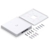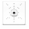 Ponto de acesso WiFi 6E elegante e montado na parede com um switch integrado de quatro portas projetado para redes de escritório de alta densidade.